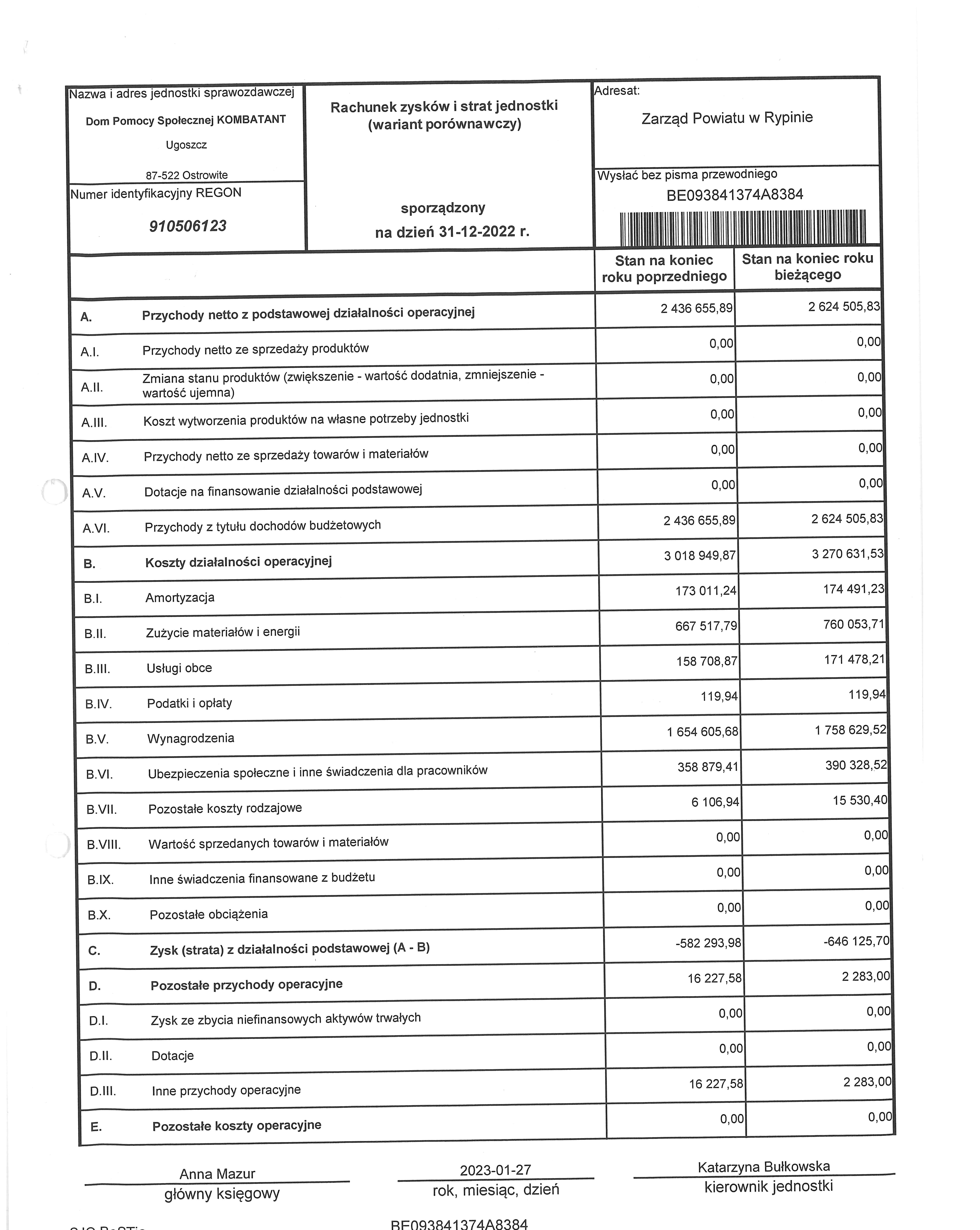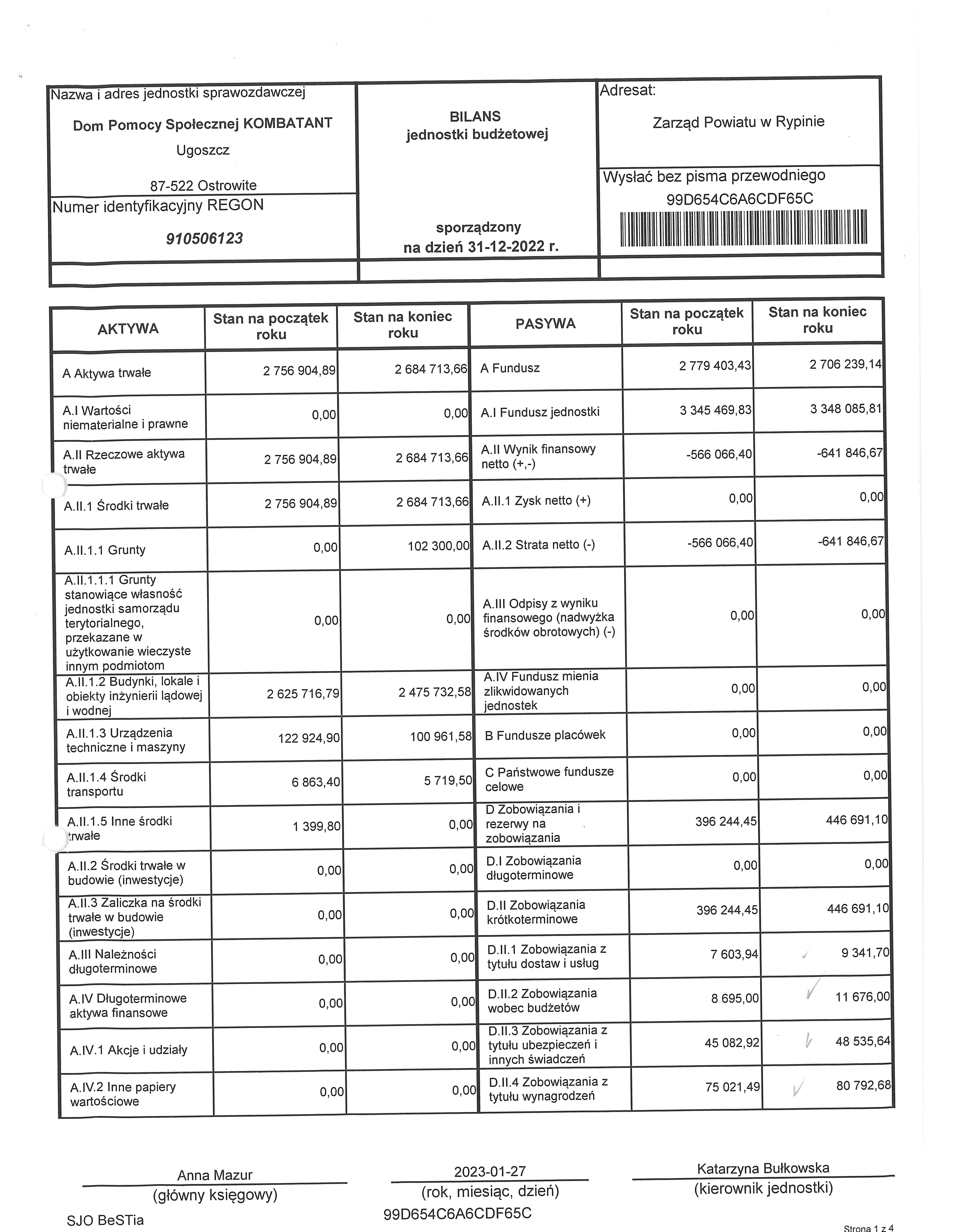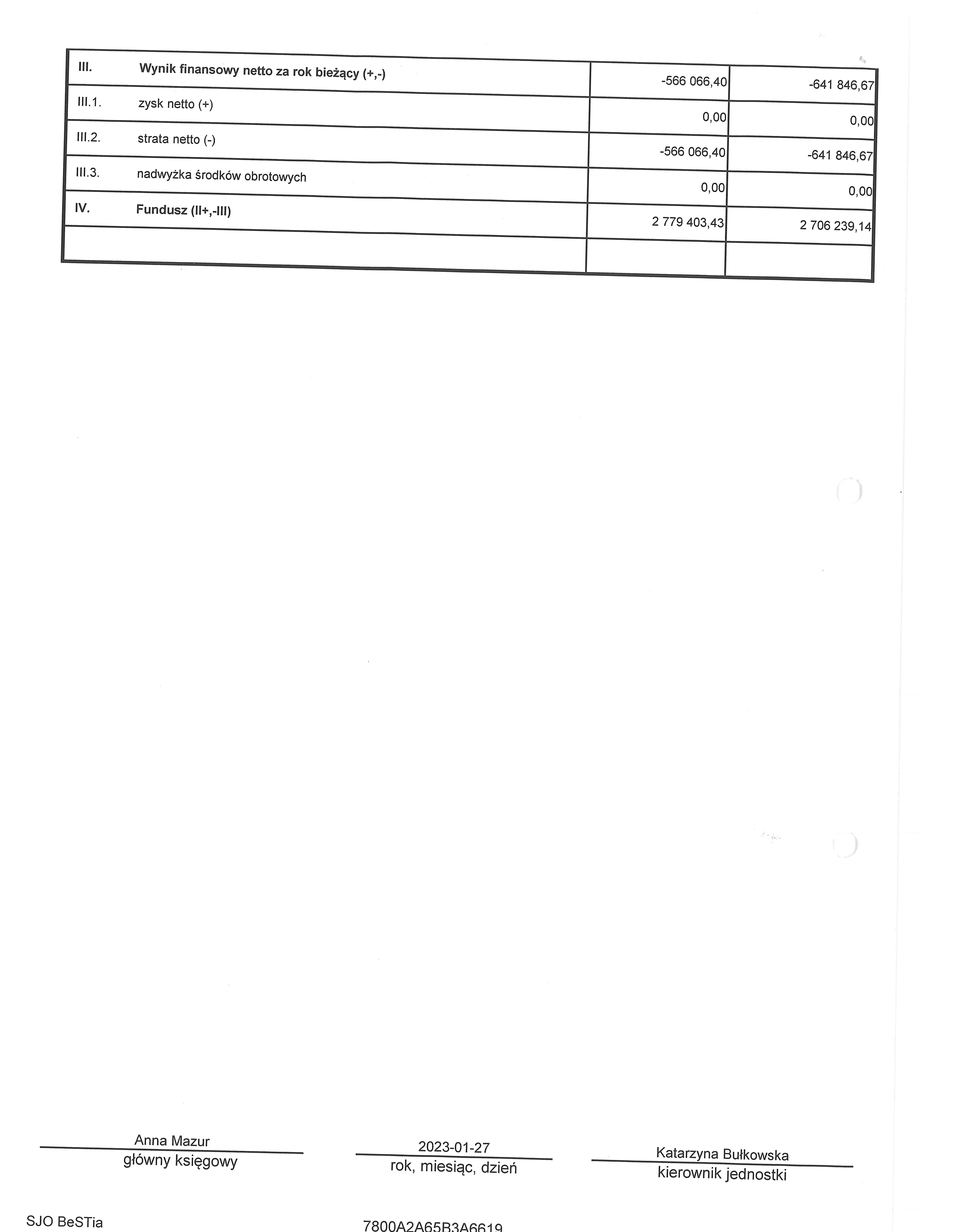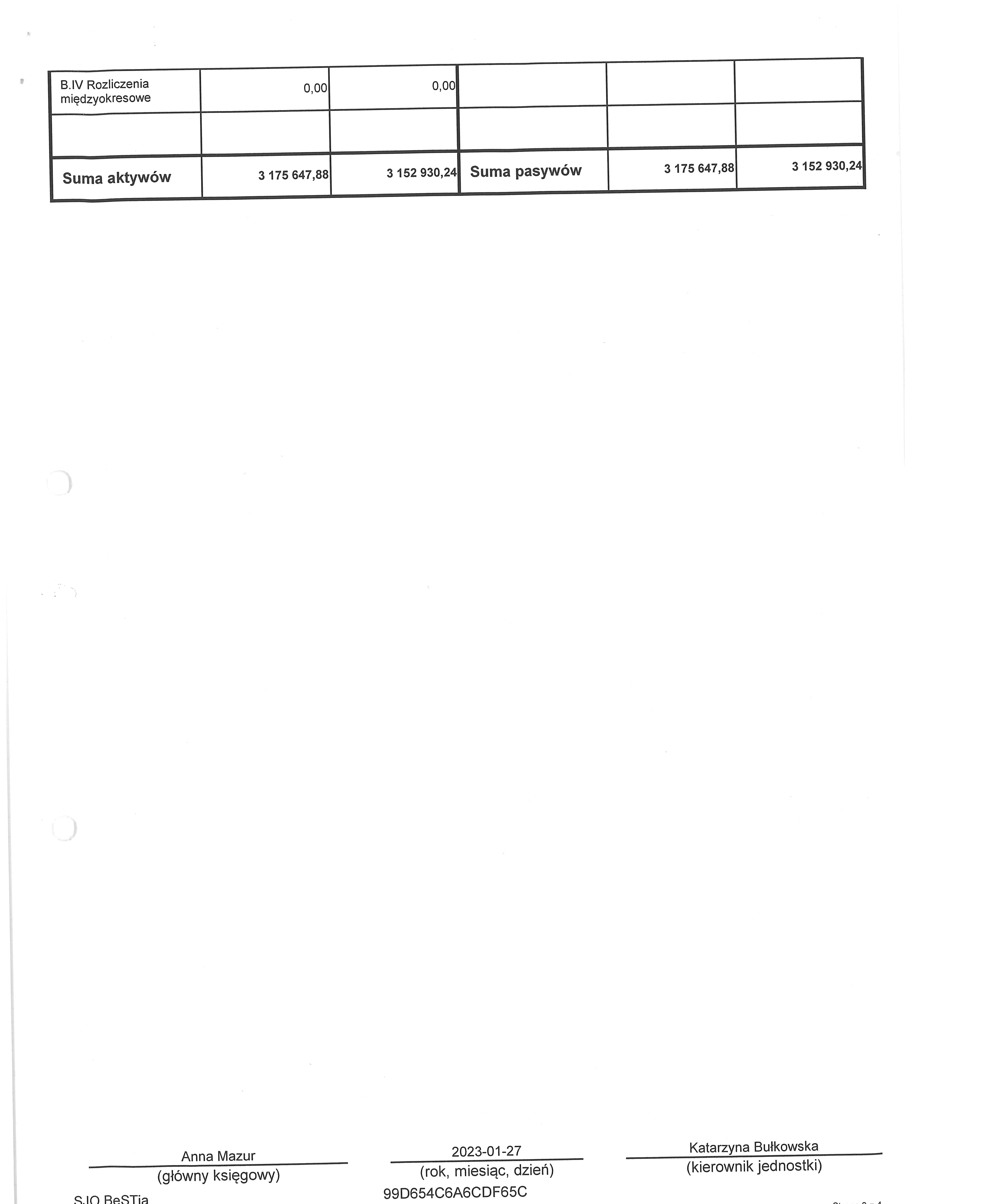 | edytowane: | data: 16:34, 10.05.2023 | przez: Katarzyna Bułkowska | Bilans za rok 2022 | |